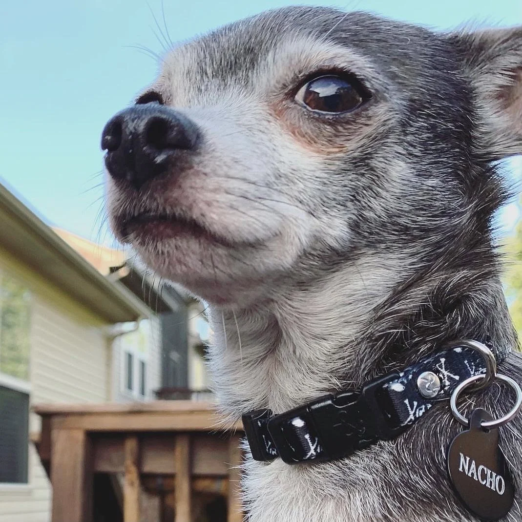 Nacho was such a special little creature; not only to me but to so many of my friends and family. He was a “blue” chihuahua (dark charcoal fur) which was rare and even at his biggest he never was over 7 pounds. He was small but mighty- in every way. He was fast and brave as they come, and though he physically had one of the smallest body’s of any dog, his heart was huge in how much love he had for everyone he met (and he never met a stranger) and especially how much pride he had in his home, and his family.
